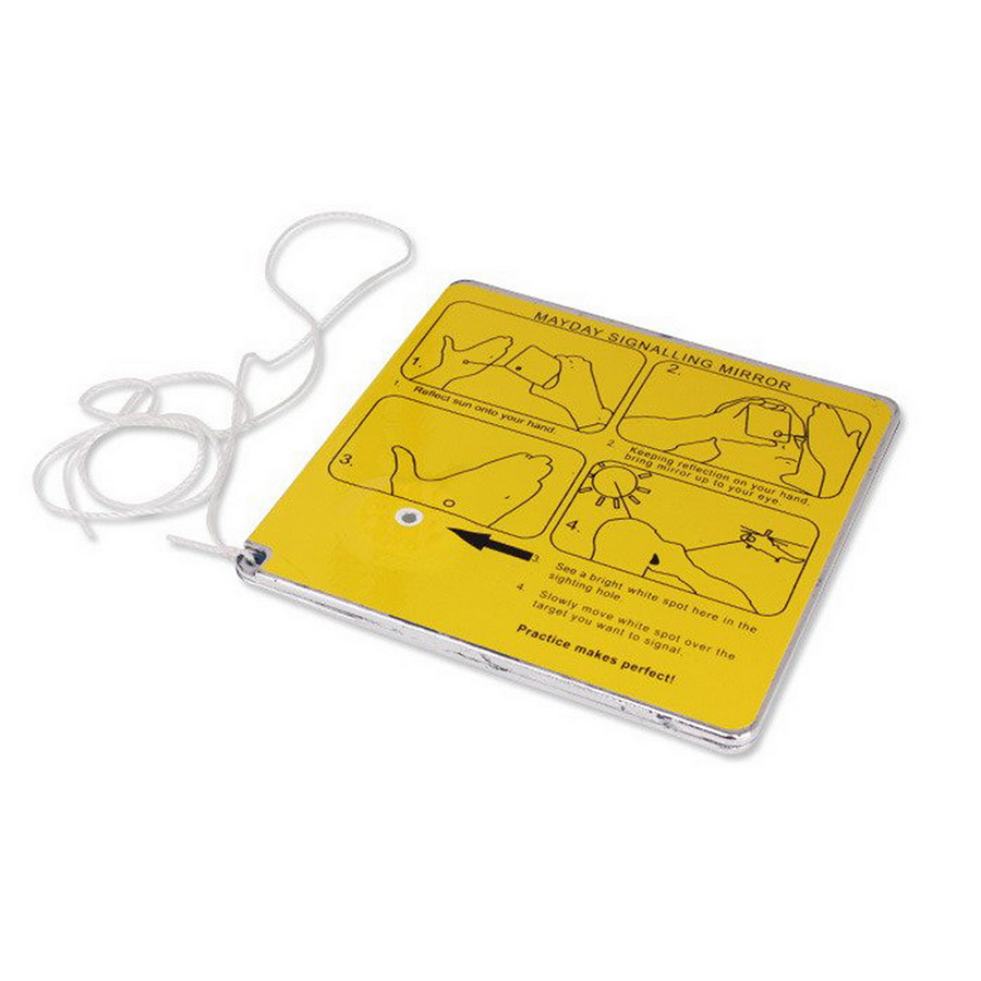 • Het is sterk en reflecterend waardoor het een bereik heeft van meer dan 16 kilometer voor de kleine spiegel en langer voor de grotere spiegel van de reddingsvlot / reddingsboot.